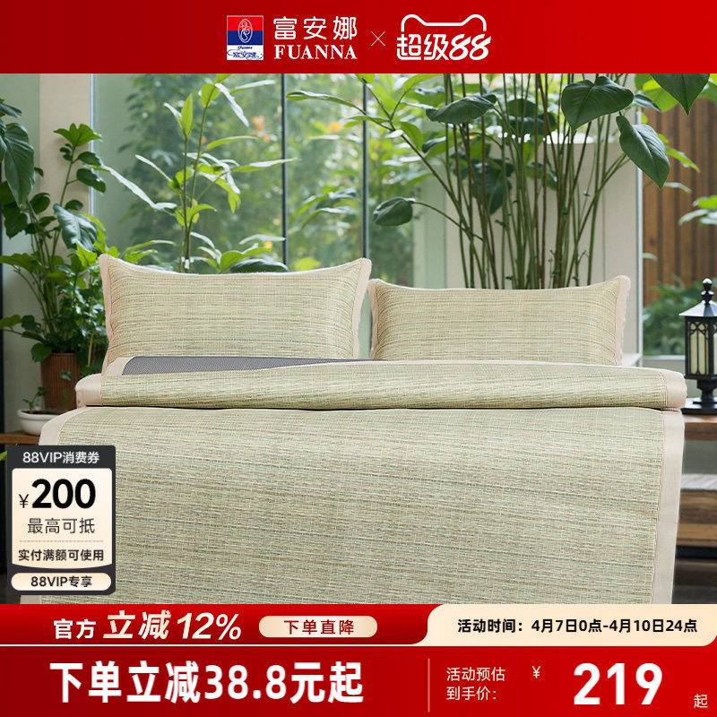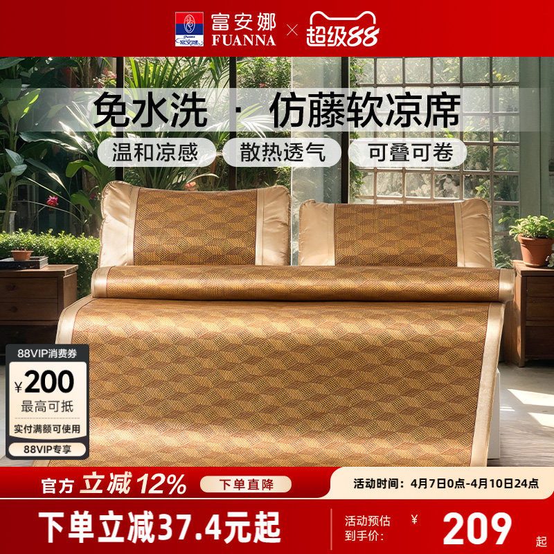 富安娜凉席夏季仿藤席空调软席子空调席家用居家床品卧室透气夏天