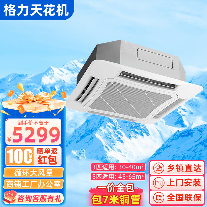 格力(GREE)中央空调二手空调95成新2匹/3匹/5匹天花机吸顶式一拖一嵌入式天井机办公商用 包套餐安装 5匹冷暖