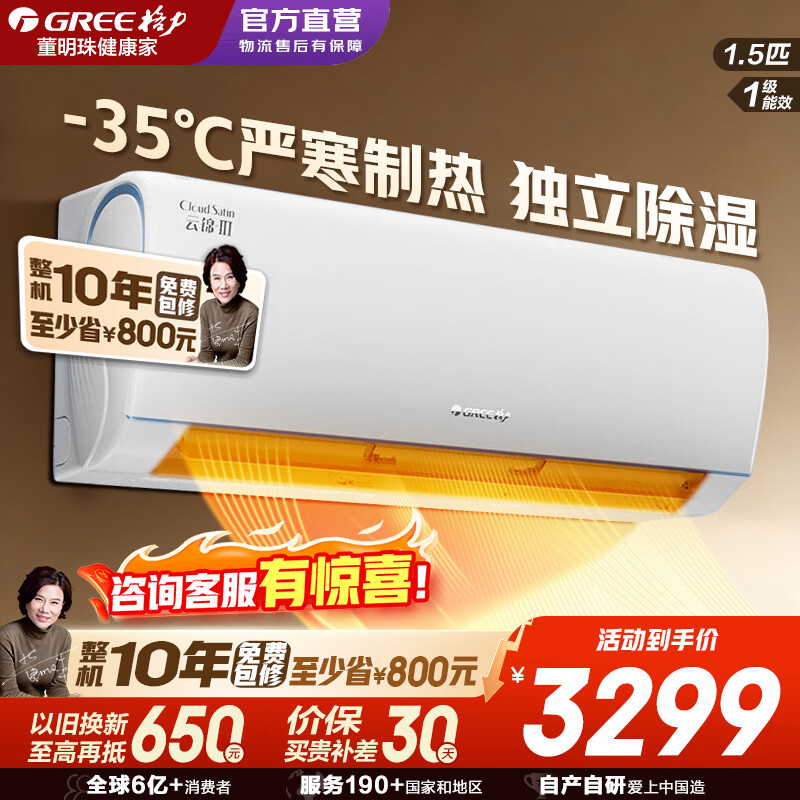 格力(GREE)空调云锦三代1.5匹新一级能效省电变频冷暖 自清洁 智能壁式卧室挂机【冷酷外机】国家补贴15%空调 云锦III 1.5匹 一级能效云锦Ⅲ 冷酷外机旗舰款