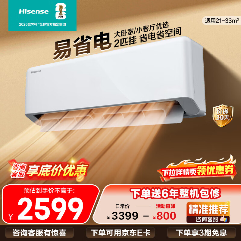 海信(Hisense)空调 大2匹 易省电E280 AI省电 速冷热仿真自然风 新一级能效 国家补贴15% 卧室客厅挂式 空调挂机 KFR-50GW/E280-X1