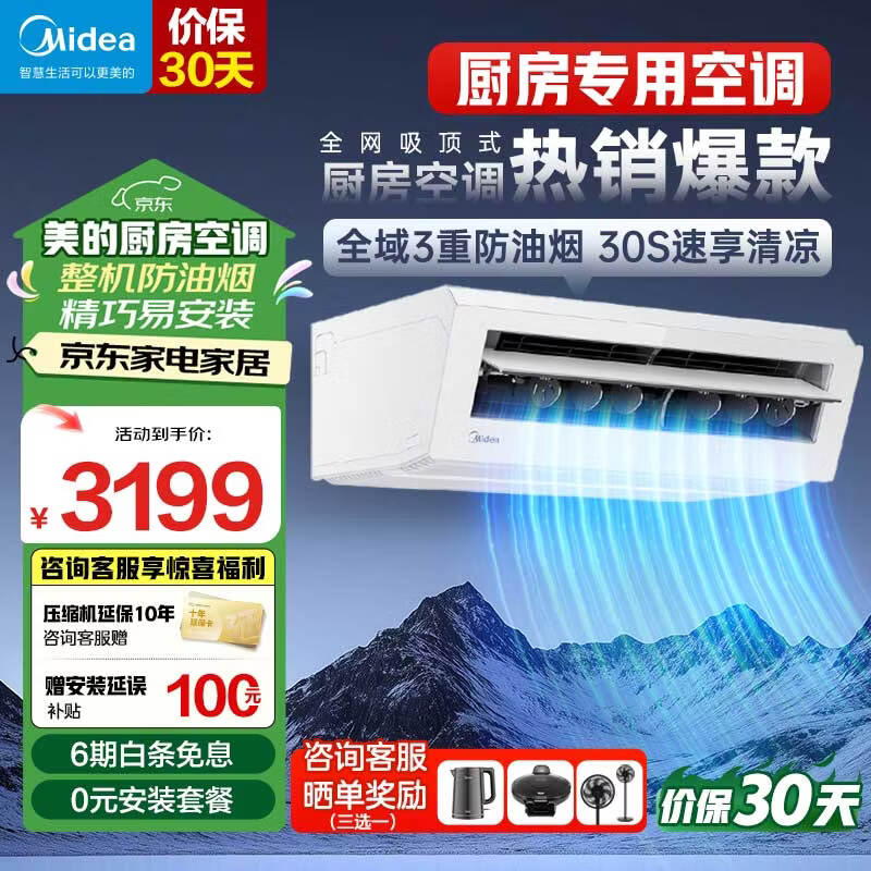 美的(Midea)厨房空调 小凉方 吸顶式1.5匹 新等级能效 变频节能省电 防油烟大冷量家用厨房专用空调 厨房空调 1.5匹 吸顶式XD300【白色】