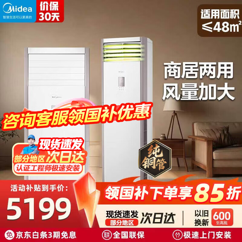 美的(Midea)空调 大3匹 风客 国家补贴15% 新一级能效 鲜逸升级款 变频节能省电 落地式立式柜式客厅 方形柜机 风客 一级能效 大3匹