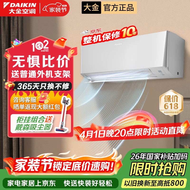 大金空调新一级能效 衡境系列 康达智控变频空调 2025新款小零境 挂机 以旧换新 国家补贴 衡境 1.5匹 一级能效ATXE135ZC-W1