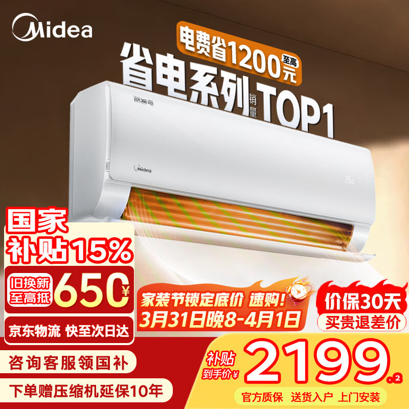 美的(Midea)空调大1.5匹挂机酷省电二代Pro新一级能效变频节能冷暖两用壁挂式卧室空调防直吹低噪WiFi智控补贴 酷省电 大1.5匹 升级力荐 省电25%