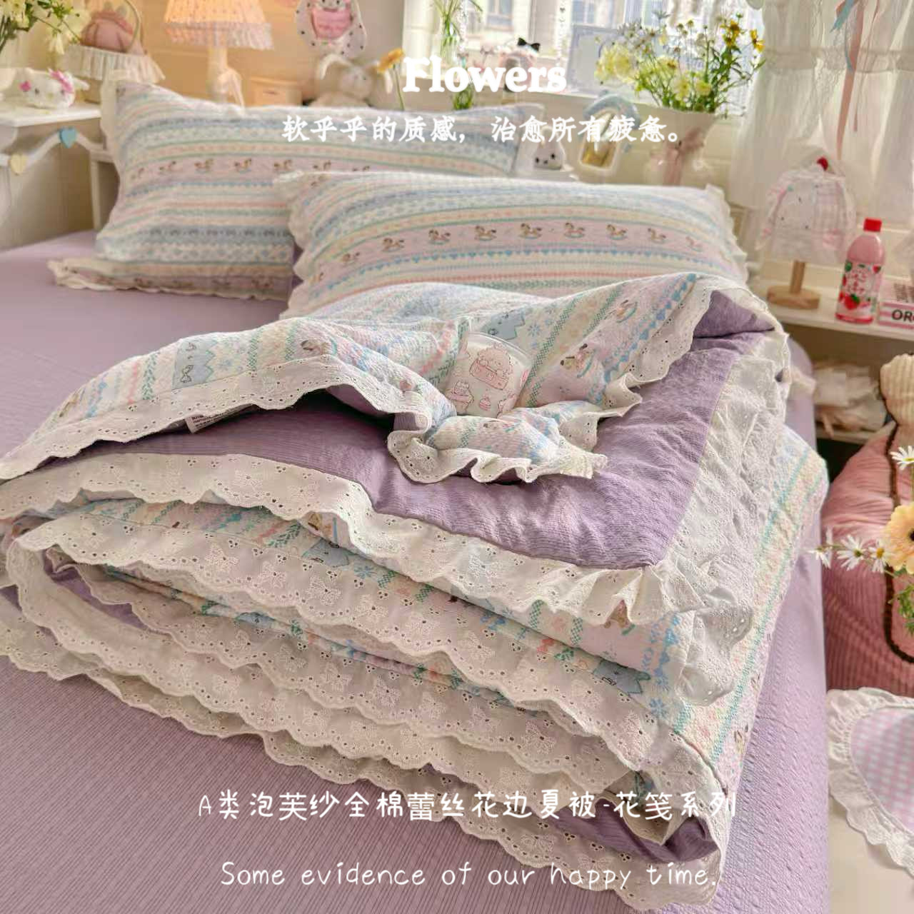 A类夏凉被纯棉全棉花边空调被可机洗夏季被子被芯薄款儿童四件套3