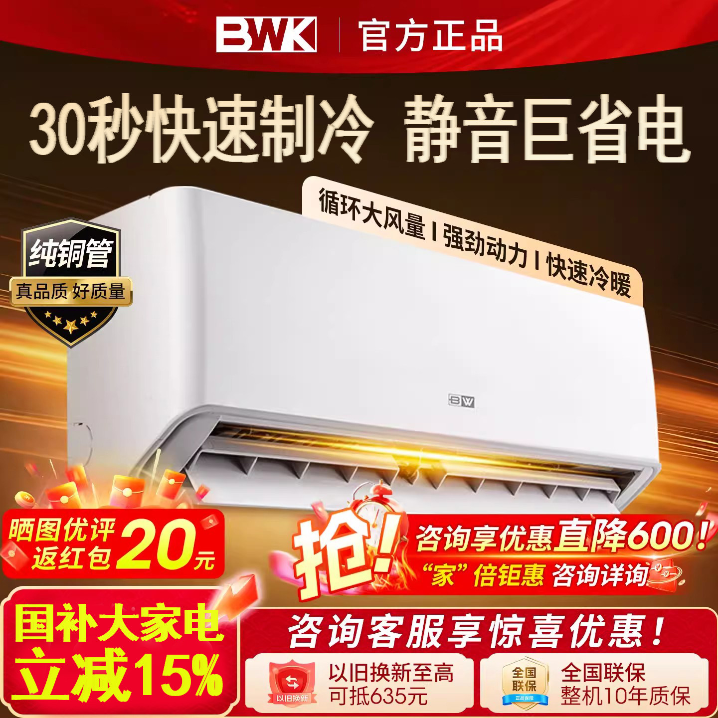家用空调大1.5匹3匹新一级能效变频冷暖单冷卧室静音节能省电挂机