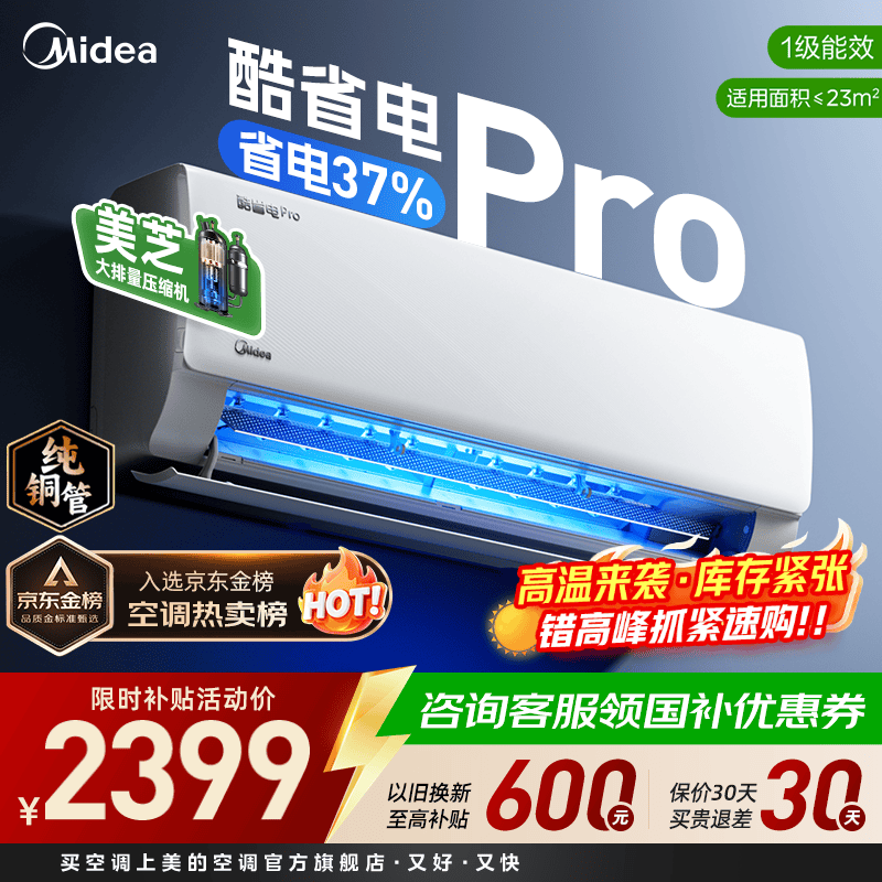 美的(Midea)美的空调1匹/1.5匹挂机 酷省电一代/二代系列变频冷暖新一级能效节能省电 以旧换新 官方旗舰店 酷省电Pro 大1.5匹 省电37%