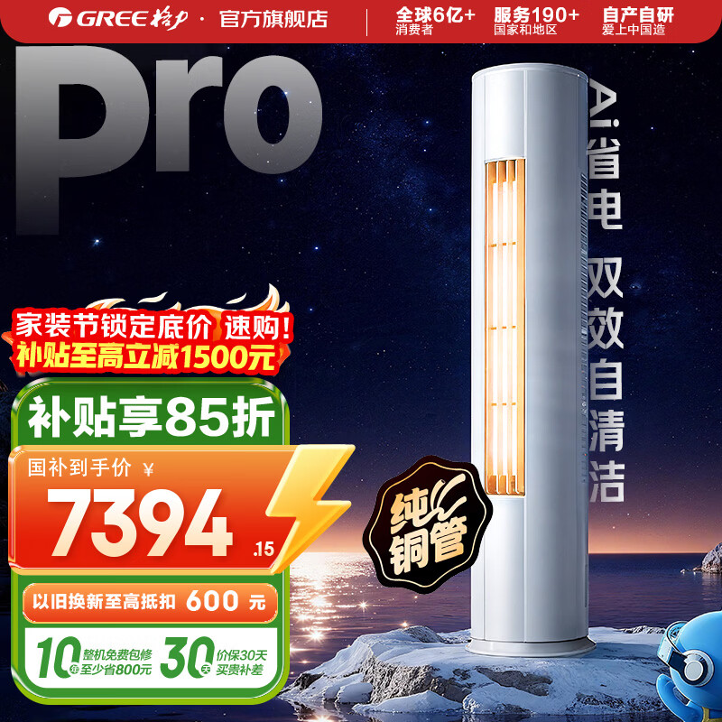 格力(GREE)空调 云锦Pro 2匹/3匹 变频冷暖 自清洁 智能WiFi 大风量 家用客厅 立式柜机 家电补贴以旧换新 云锦Pro一级能效 3匹 2025年新品