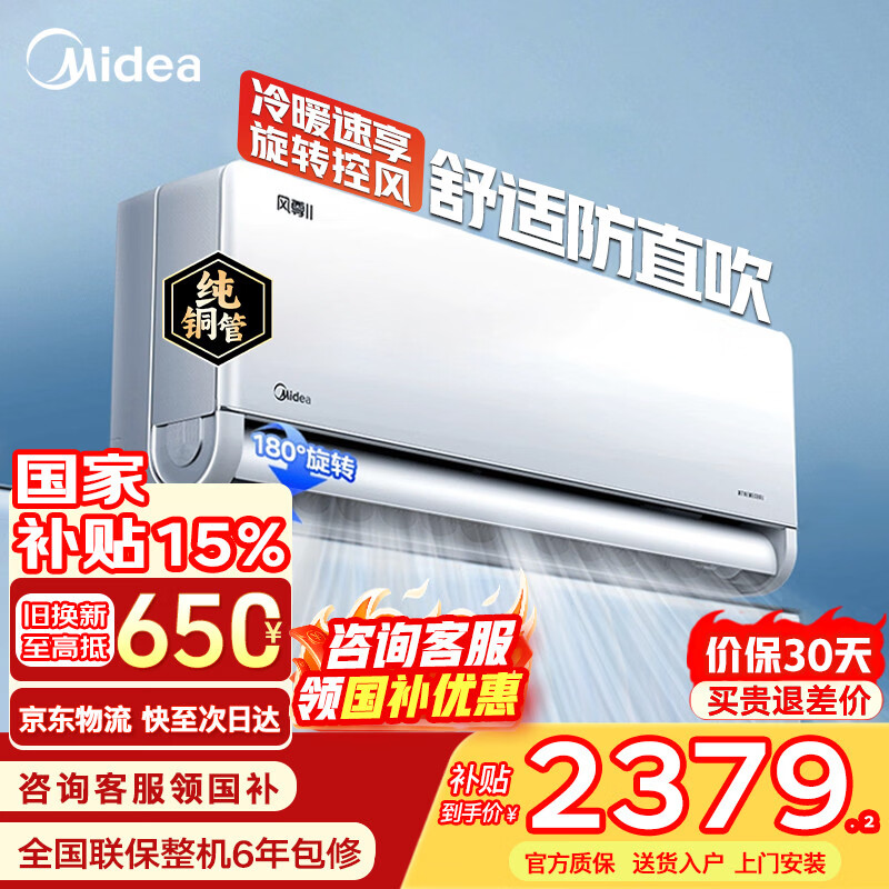 美的(Midea)空调挂机风尊二代Pro大1.5匹 新一级能效 变频节能冷暖两用壁挂式卧室空调防直吹APP智控 以旧换新 风尊二代 大1.5匹 舒适防直吹 180°控风