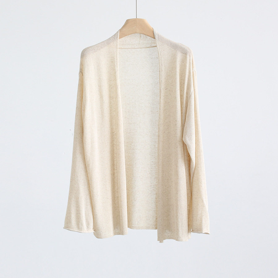 夏慵懒随性老钱风无扣天丝亚麻长袖针织开衫气质通勤防晒空调外搭