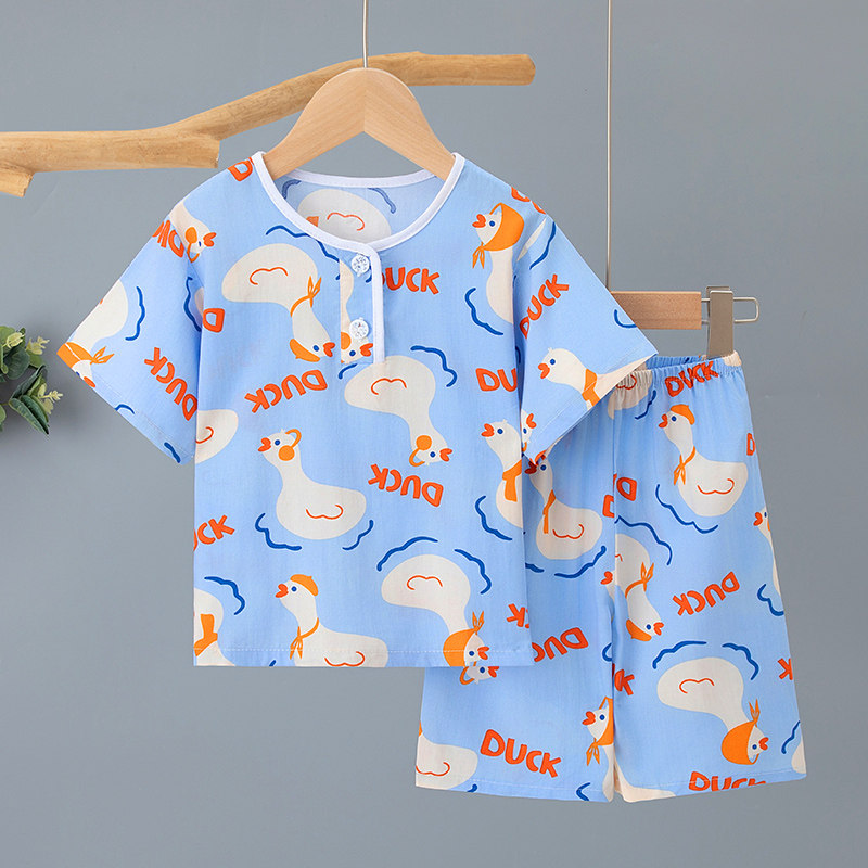 夏季儿童睡衣男童女童短袖空调服薄款棉绸宝宝男孩家居服绵绸套装