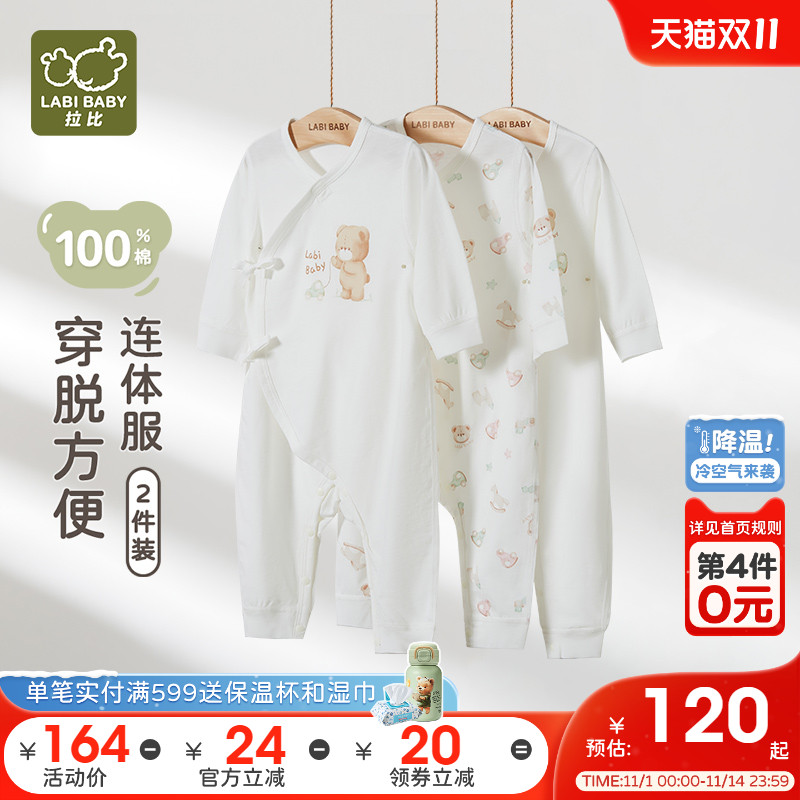 拉比婴儿哈衣爬爬服25新品夏新生儿宝宝纯棉连体衣薄款空调服2件