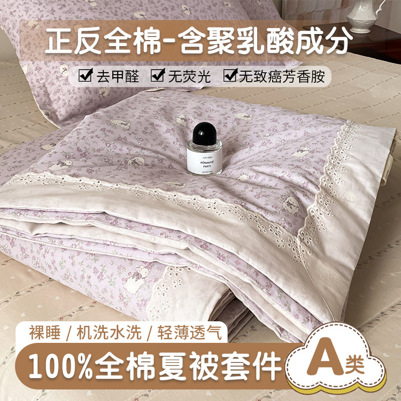 2026新款全棉法式夏被四件套可机洗空调被夏凉被纯棉春秋被四季被