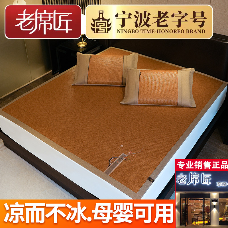 老席匠凉席藤席2026新逾静席高档绣花款加厚家用可折叠夏季空调席