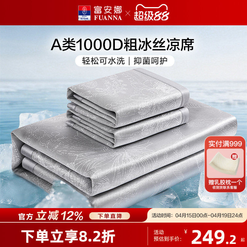 富安娜1000D可水洗冰丝席凉席可折叠A类抑菌空调席子单双人夏季