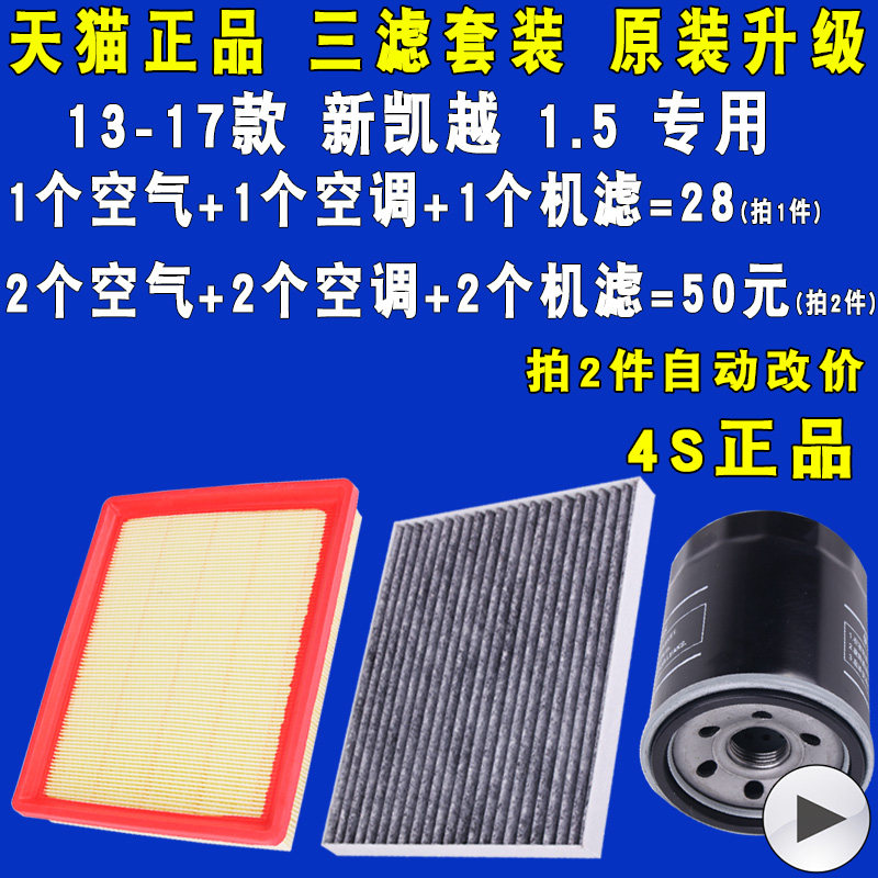适配别克13-17新凯越1.5 机油滤芯空气空调滤清器格三滤套装原厂