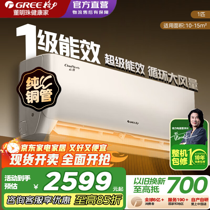 格力(GREE)【官仓直发】空调 云佳变频空调挂机大1匹/1.5匹一级新能效 变频冷暖 自清洁 壁挂式 卧室空调挂机 大1匹一级能效云佳 节能省电 10-15㎡ 挂机