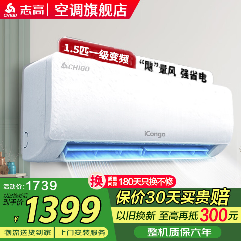 志高空调挂机大1匹/1.5匹2P 新能效省电一级变频冷暖空调 家用电器壁挂式空调 以旧换新 大1.5匹 一级变频冷暖