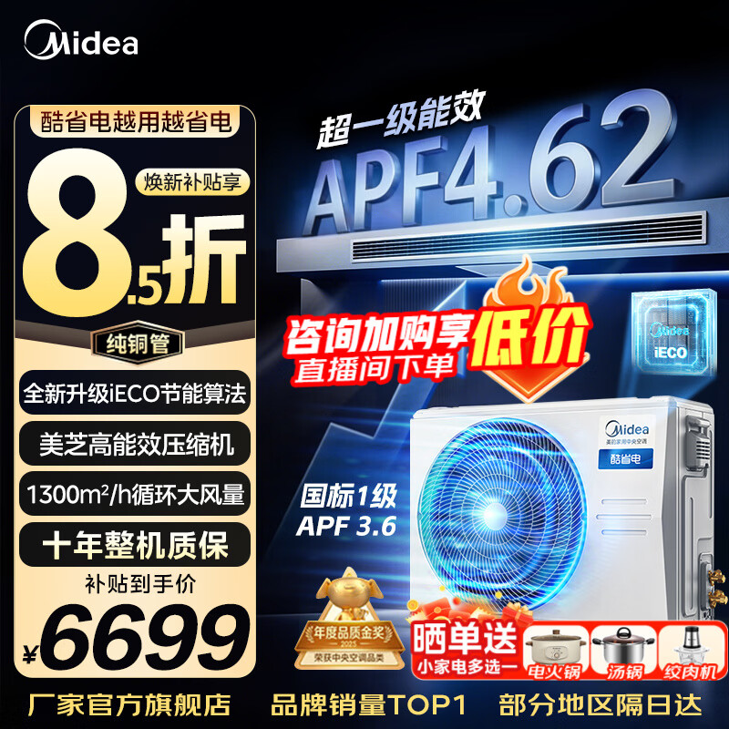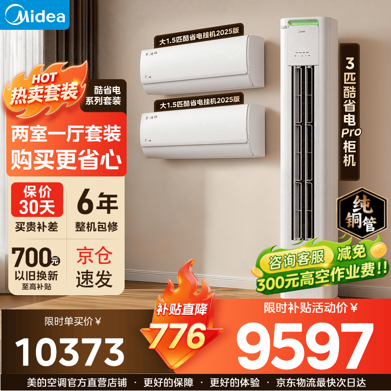 美的(Midea)空调套装 一级能效 变频冷暖节能自清洁家用客厅卧室空调 一套购齐 家电国家补贴柜挂套装三室一厅 酷省电2025版挂+酷省电Pro柜机 两室一厅