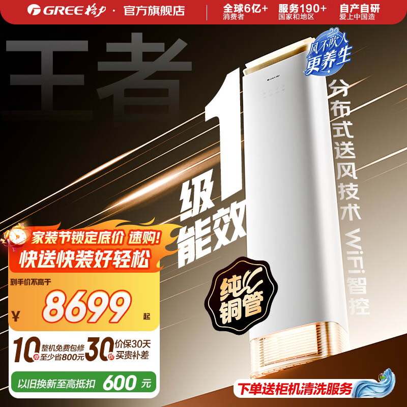 格力空调 王者/明珠 变频冷暖 风不吹人 自清洁 智能 客厅空调立式高温空调柜机家电国家补贴以旧换新 王者 新一级能效 3匹 柜机