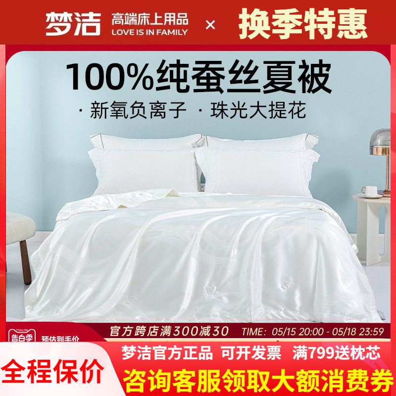 梦洁家纺夏凉被空调被子100蚕丝被芯夏季248x248蚕丝夏被新氧夏天
