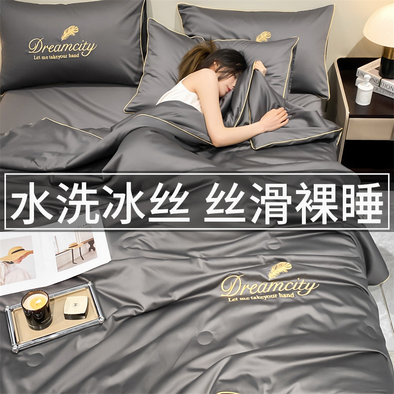 冰丝空调被夏凉被非纯棉全棉可机洗四件套薄被子春秋单人夏季夏天