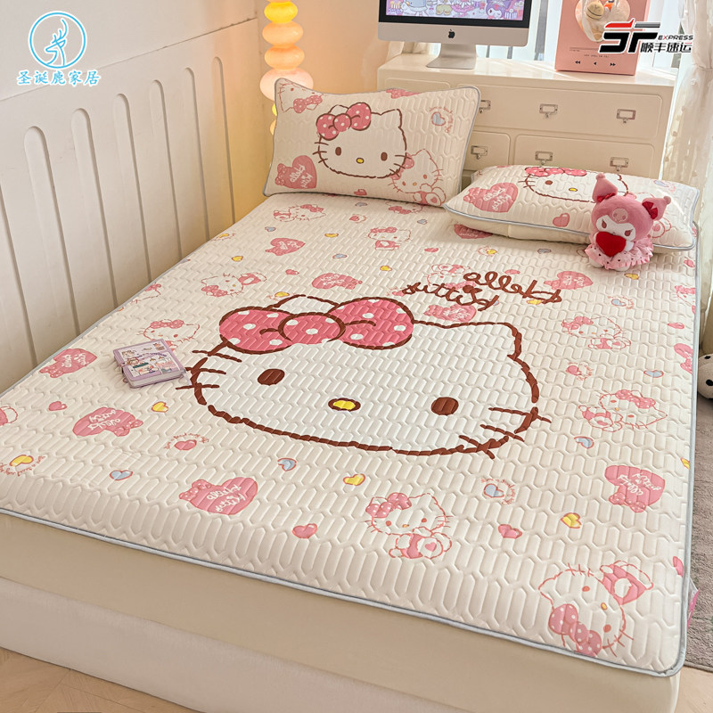 夏季少女心儿童爱心kt乳胶凉席床笠三件套可机洗学生宿舍空调席子