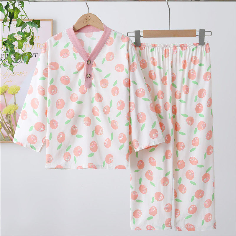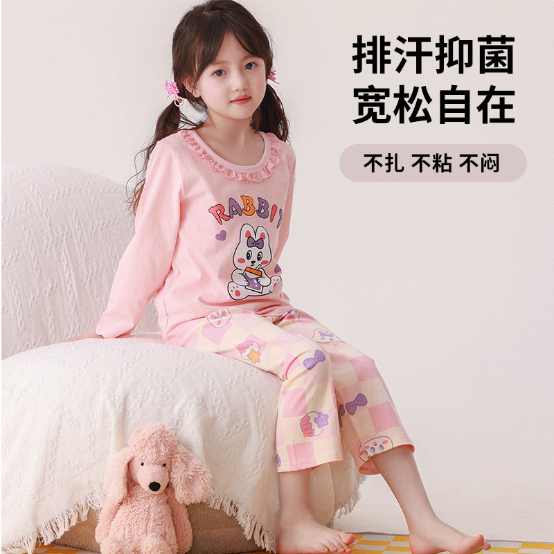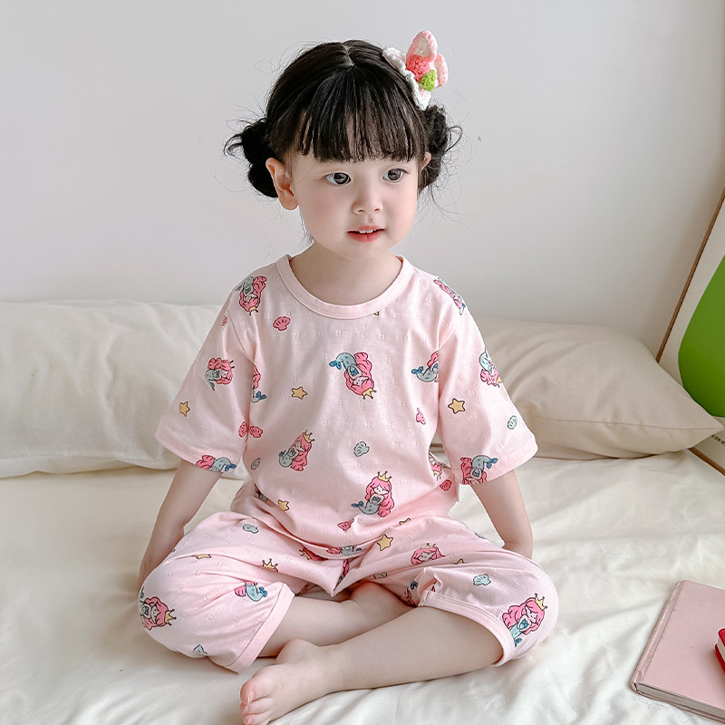 女童睡衣夏季薄款纯棉七分袖2026新款女宝宝儿童空调家居服春夏款