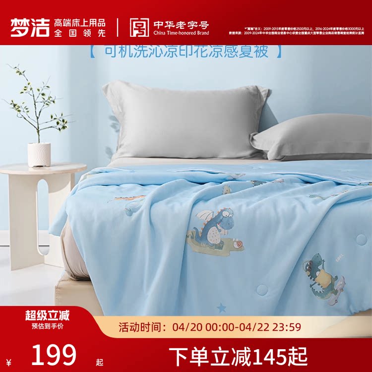 梦洁小凉皮A类儿童夏凉被薄被可水洗被芯凉感纤维被子空调被宝贝
