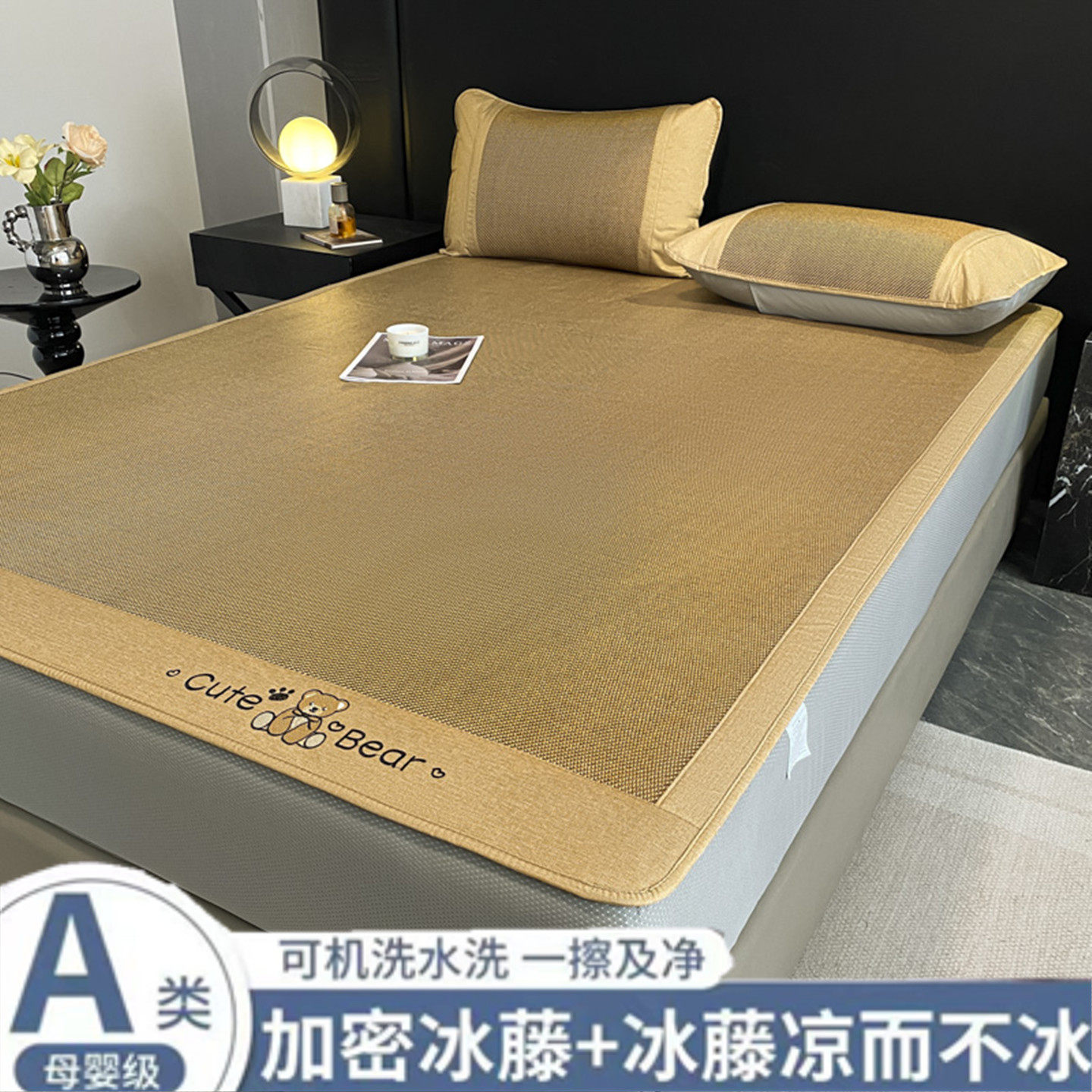 夏季冰丝藤席凉席三件套床笠款可机洗单双人空调软席2026新款席子