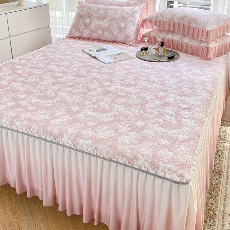 2025新款夏季冰豆豆凉席床裙款冰丝席三件套可机洗空调软席子法式
