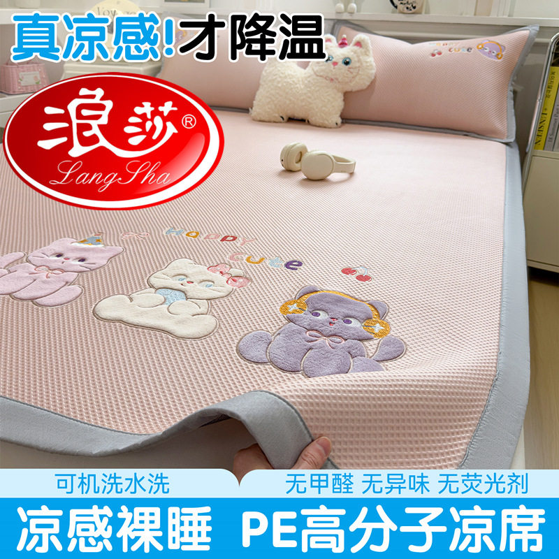 浪莎A类卡通PE凉感冰丝凉席2026新款儿童空调凉席冰丝席子可机洗