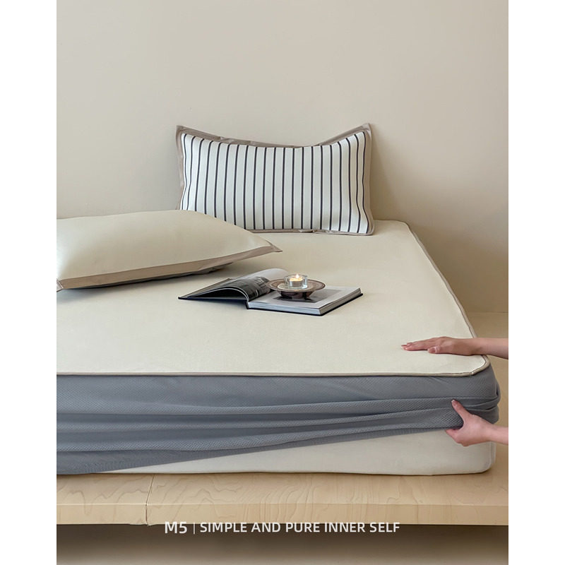 ins简约纯色华夫格凉感丝凉席1.5m1.8三件套冰丝软席空调席床笠款