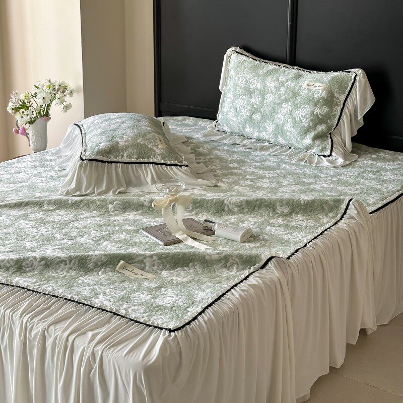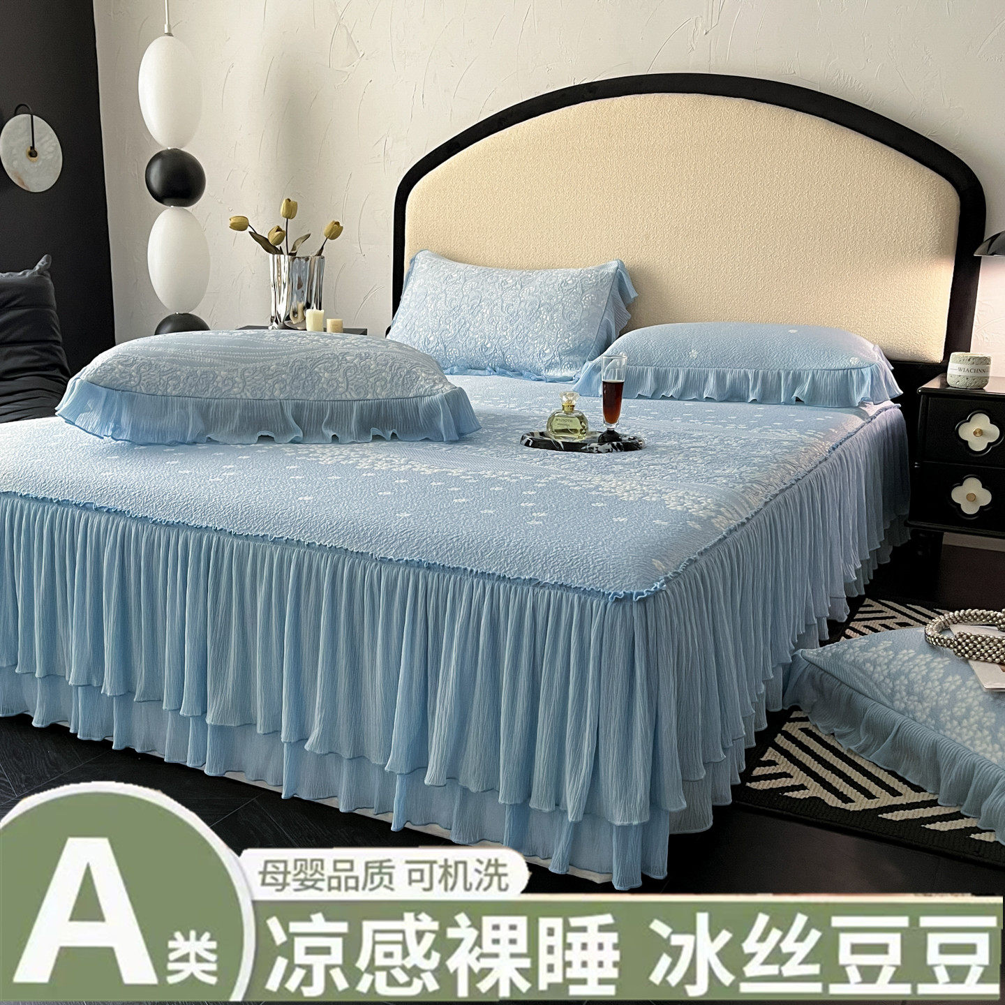夏季凉感丝滑冰丝凉席三件套法式轻奢复古提花可水洗床裙款空调席