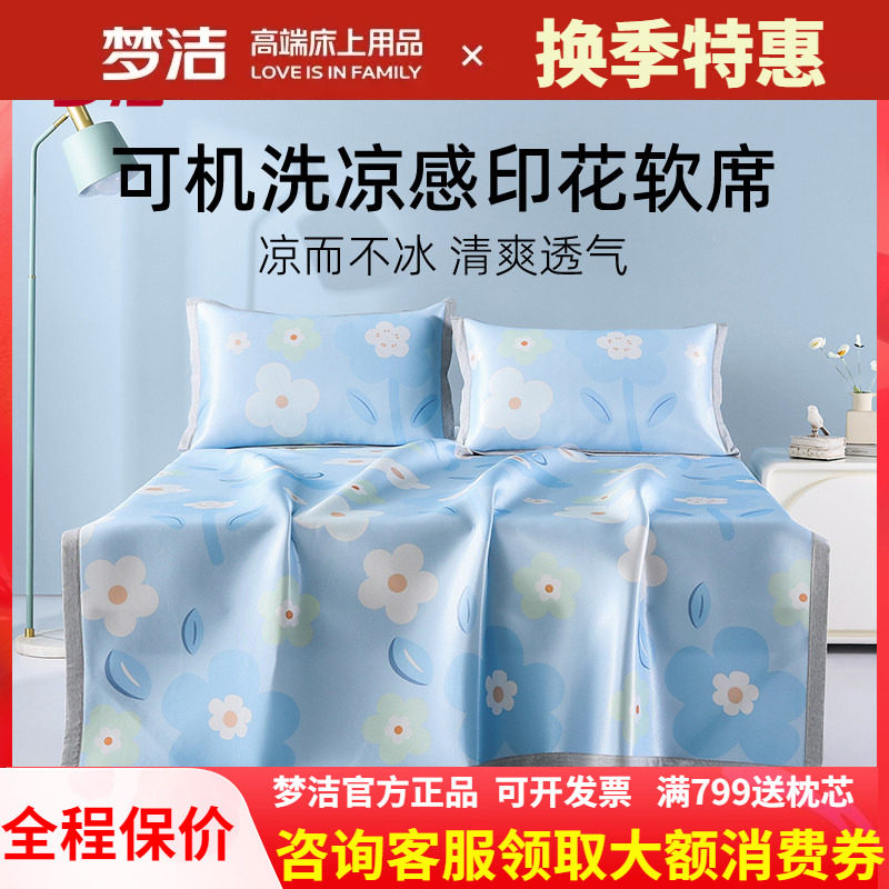 梦洁家纺夏季冰丝凉席两三件套可水洗夏天空调席子学生宿舍单人双