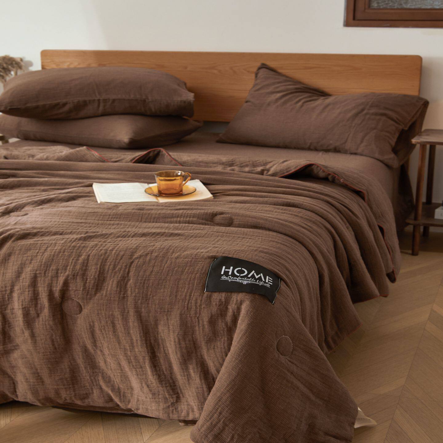 棉好物全棉A类双层纱软糯舒适色纯棉织提花纱布千鸟格夏被空调被