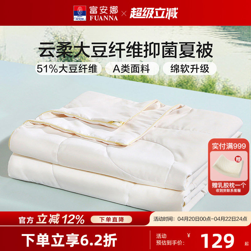 富安娜被子大豆纤维夏被春秋被空调被单人双人夏凉被四季被芯棉被