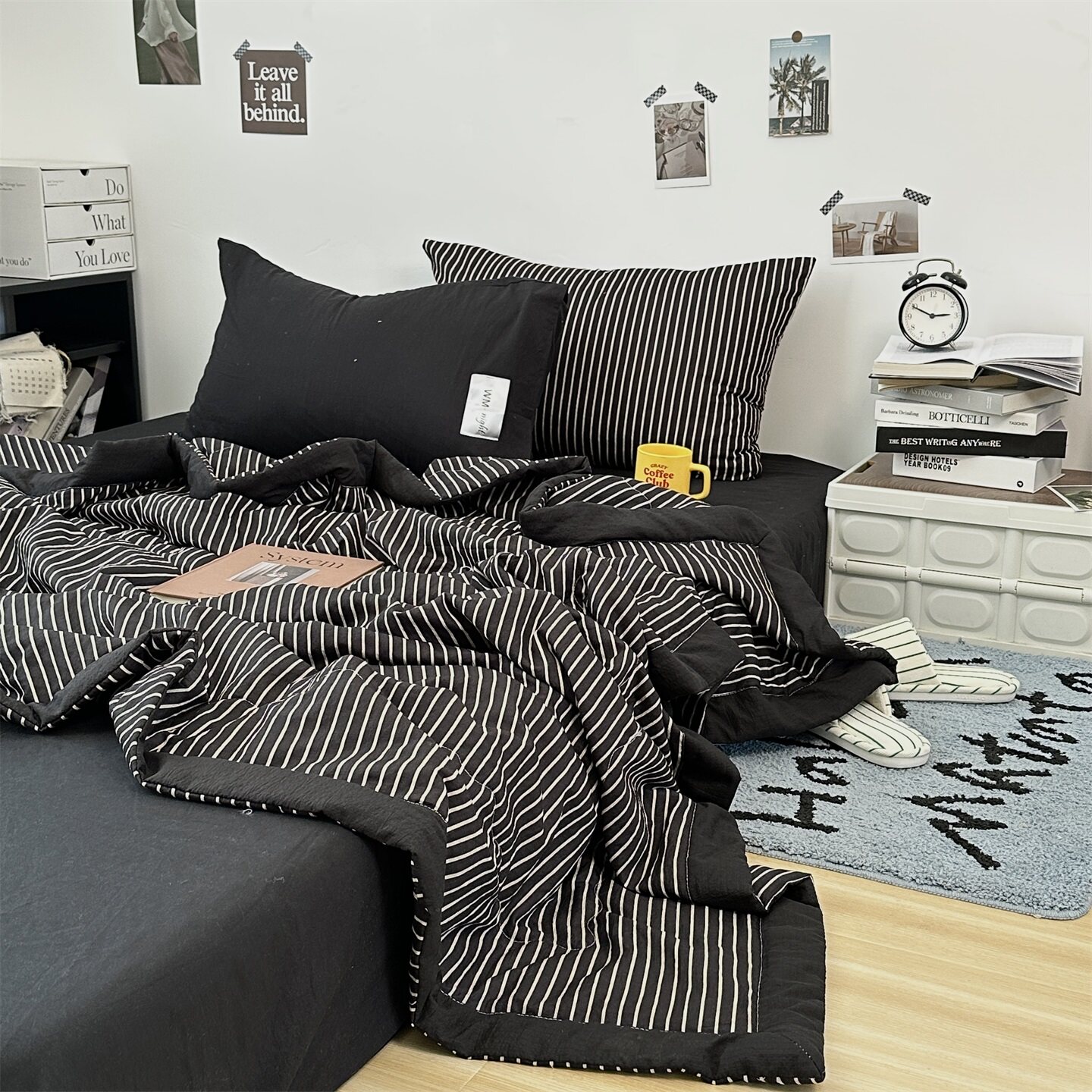 日式简约混搭ins黑色条纹水洗棉夏凉被四件套夏季空调被2m薄被芯