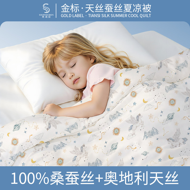 金标儿童蚕丝被天丝夏被空调被夏凉被100%桑蚕丝长丝可爱梦幻马年