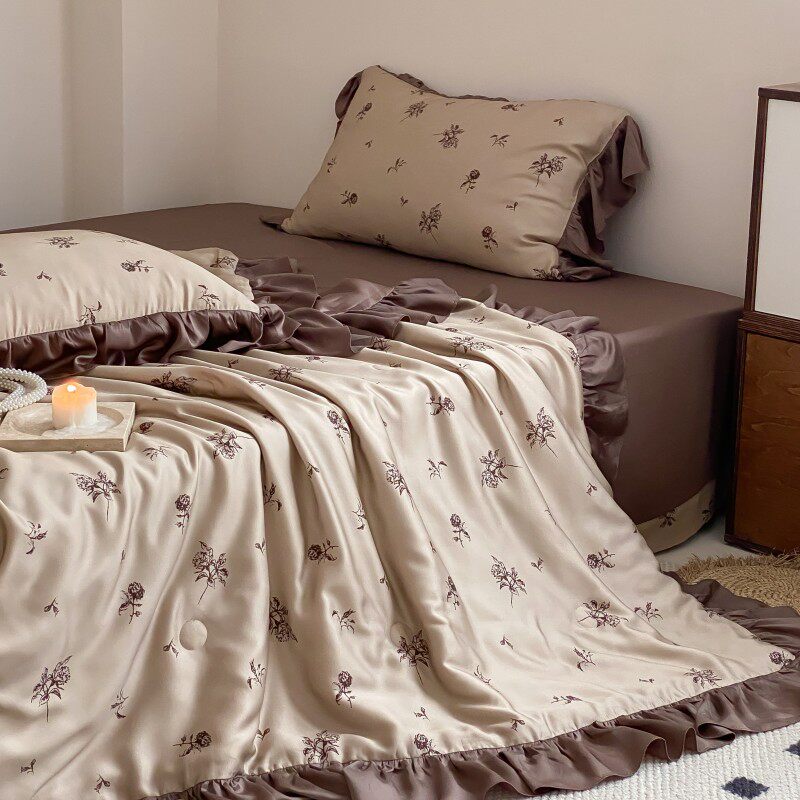 法式公主风纯色复古薄被子80支天丝夏凉被四件套夏季空调被可机洗
