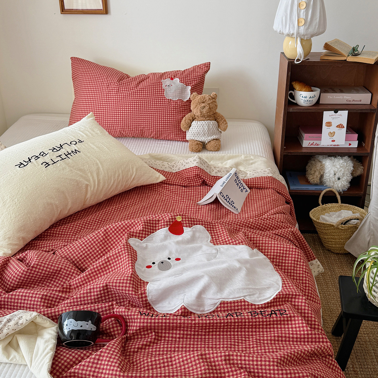 浪莎提花全棉水洗棉夏凉被四件套纯棉棉花空调被宿舍春秋被可机洗