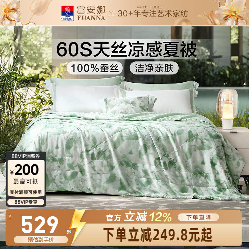 富安娜蚕丝被60S天丝莱赛尔被芯田园风夏凉被子夏季薄款空调夏被