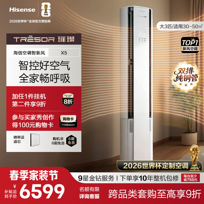 新品海信璀璨新风空调X5大3匹一级能效柜机以旧换新世界杯定制