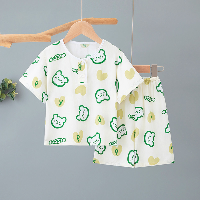 夏季儿童棉绸短袖短裤两件套男童女童宝宝空调卡通轻薄休闲家居服