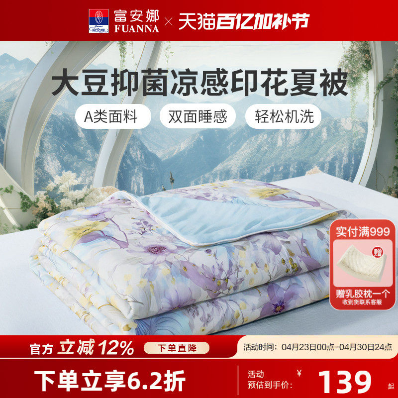 富安娜大豆抗菌夏凉被A类学生宿舍空调被可水洗凉感被子夏季被芯