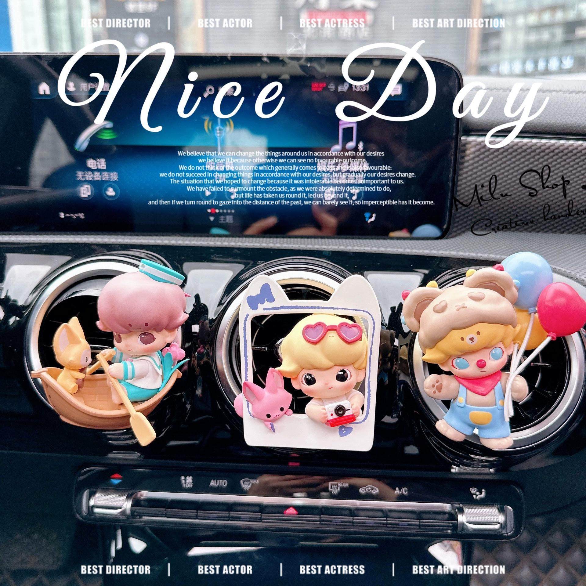 正版DIMOO约会日系列泡泡玛特网红车载香熏汽车空调出风口装饰夹