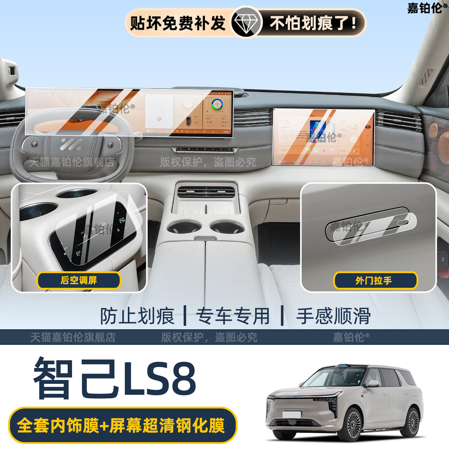26款智己LS8中控屏幕钢化膜后空调屏贴膜中柱门板保护膜 改装配件