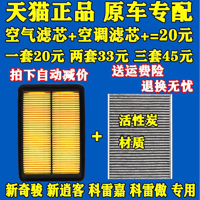 适配 新奇骏 逍客 雷诺科雷傲 科雷嘉2.0 2.5空气滤芯 空调滤清器