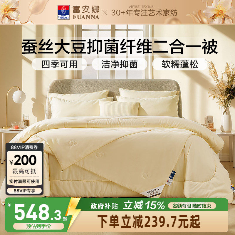 富安娜蚕丝被芯冬被二合一子母被子四季通用大豆被褥空调被春秋被