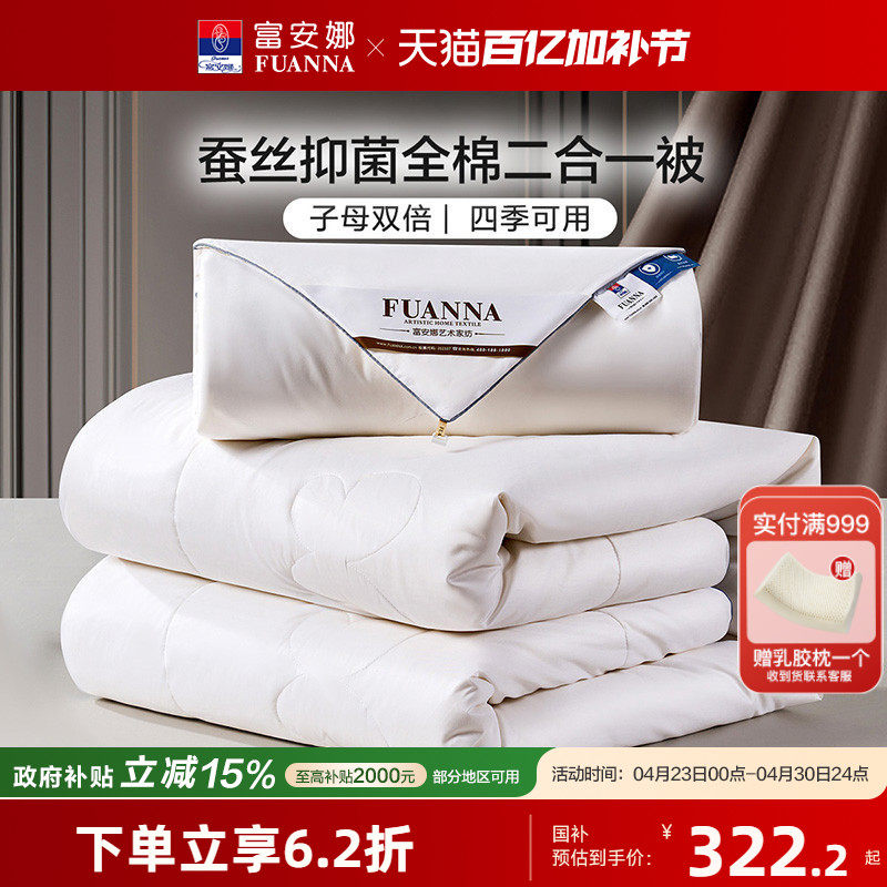 富安娜蚕丝被冬被春秋被空调被二合一被芯结婚喜被四季通用子母被